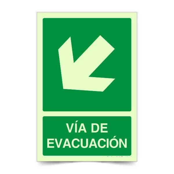Vía de Evacuación Flecha Izquierda Abajo Fotoluminiscente